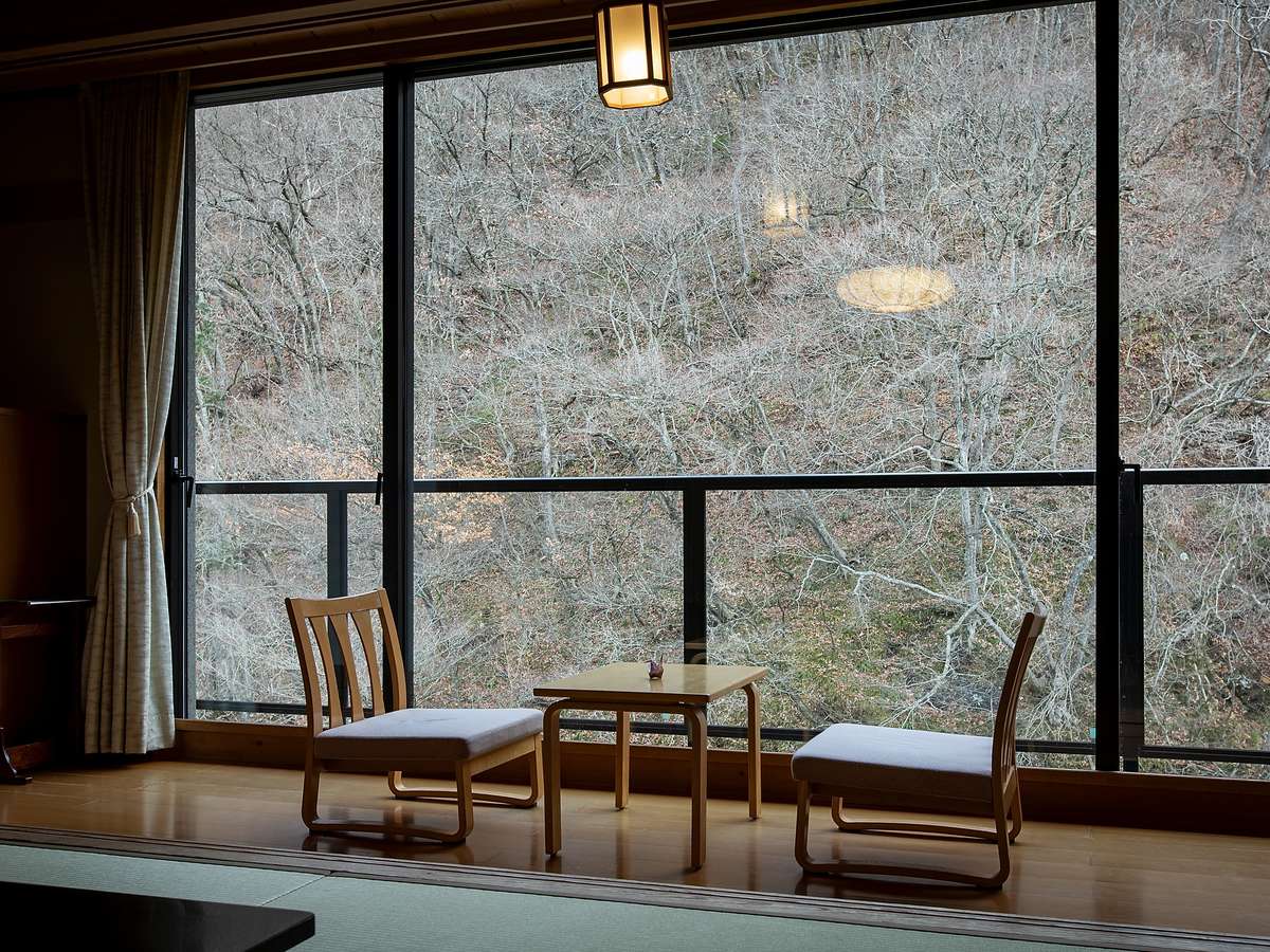 - 新館:渓流側の和室は窓も大きく景色が最高